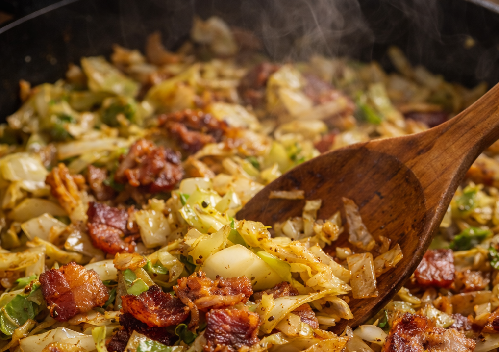 This fried cabbage recipe is the ultimate comfort food side dish. Crispy bacon, sweet caramelised onions, and tender cabbage come together with a touch of