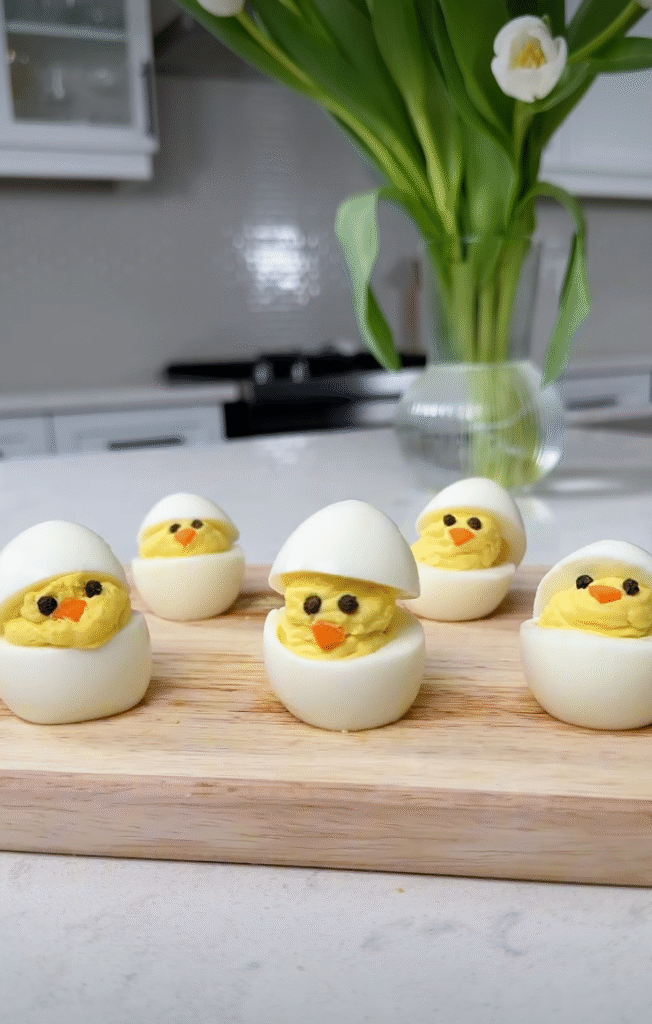If you’re looking for a fun, festive, and totally adorable addition to your Easter table, these Deviled Egg Chicks are it. They’re classic deviled eggs with the sweetest little twist — topped with “shell” hats and decorated to look like baby chicks.