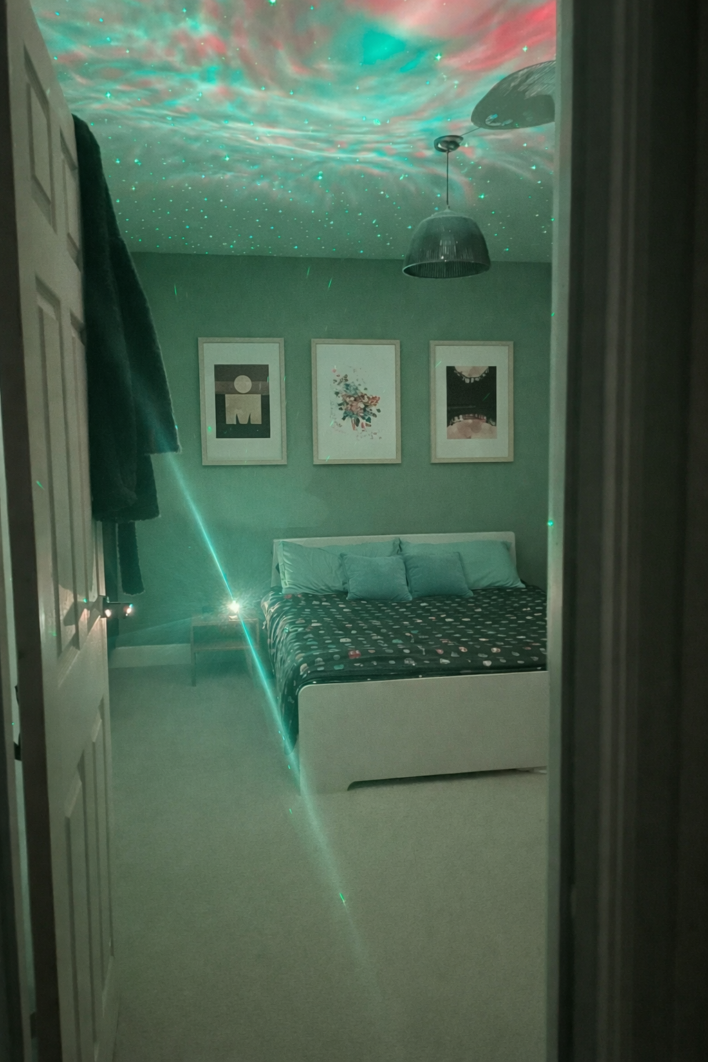 A galaxy projector light is one of those small additions that can make a bedroom feel completely magical at night.