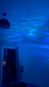 When the lights go down, the projector fills the ceiling with stars and colourful galaxy effects. It’s just wonderful at night!! Creating a relaxing atmosphere that feels a bit like sleeping under the night sky. It’s perfect for children who love space, but it also works as a calming night light that helps wind things down before bedtime.