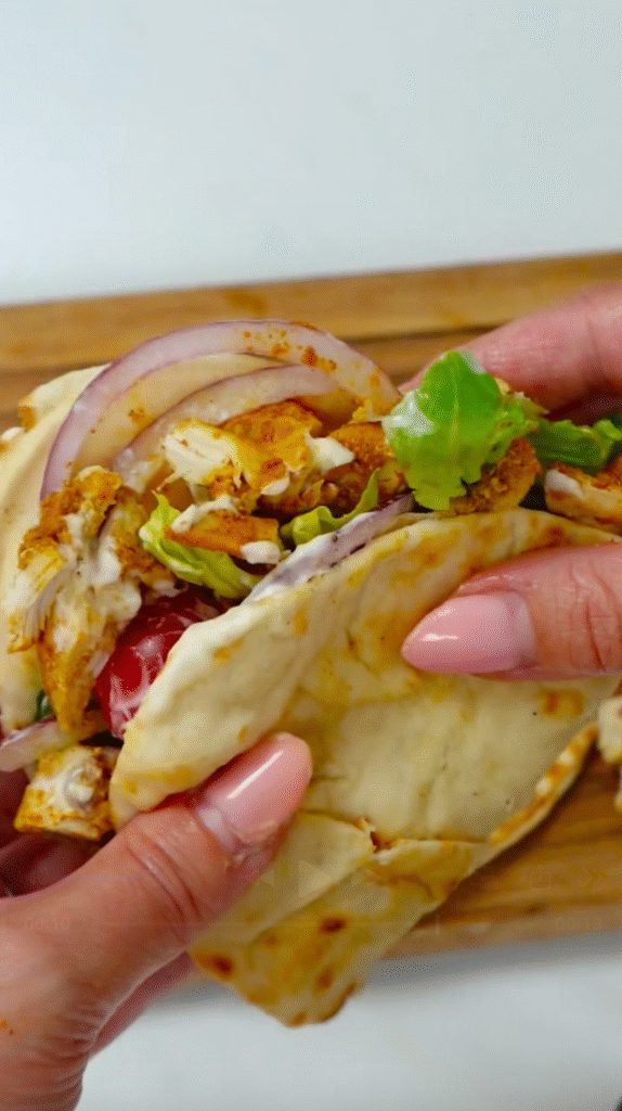 The chicken turns juicy, flavour-packed and perfectly spiced, and serving it in flatbreads makes it ideal for kids too (especially when everything stays inside the wrap!).